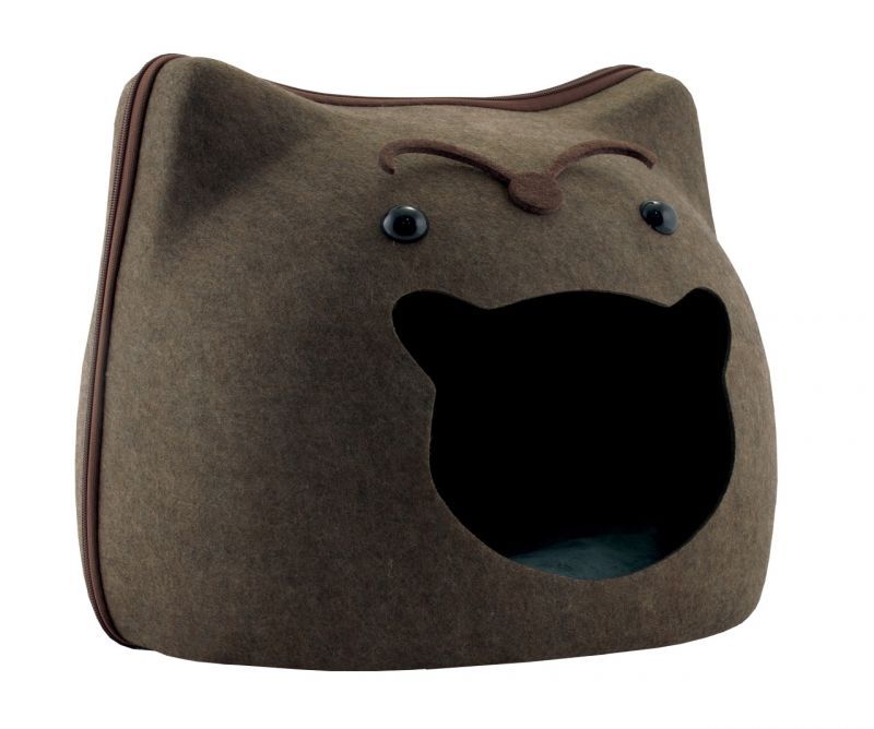 Cueva para gatos desmontable de color marrón. Se une a través de cremellera. Contine cojin.