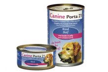 Ternera 22%, pollo 19%, caldo de carne con gelatina 59%