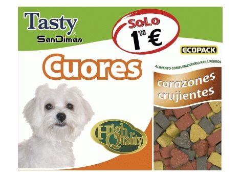 Cuores, 60 grs. Ideal para razas pequeñas. Deliciosos corazones tricolores. Alimento completo para perros. Suministrar como premio o recompensa.