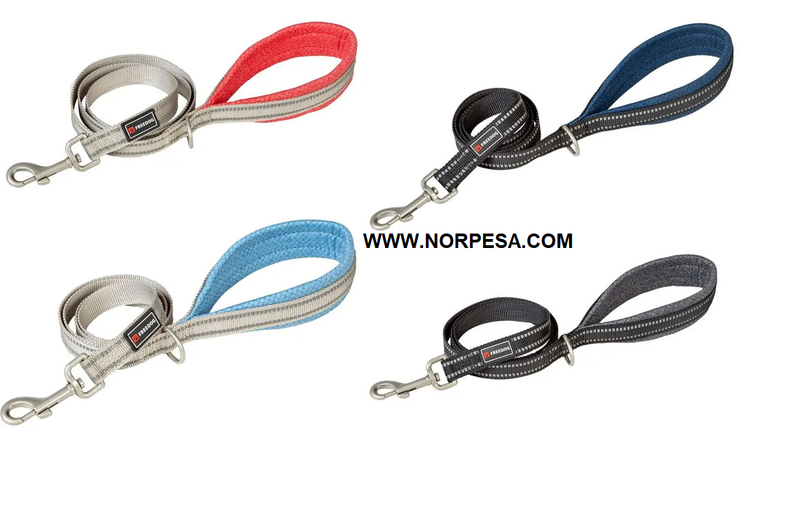 Tiradores freedog modelo SHIVA fabricados con materiales resistentes y de alta calidad que garantizan la durabilidad como el Nylon y el poliéster con mosquetón hecho de Zinc. Dispone de un tejido reflectante para mayor seguridad en los paseos de noche. Es un modelo elegante y cómodo.