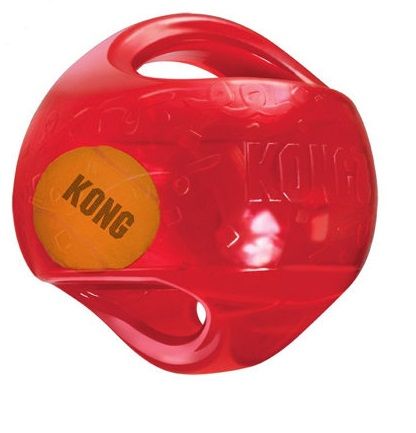 El KONG Jumbler es una pelota dos en uno para el doble de diversión interactiva. La pelota de tenis en el interior y el sonoro chirriador incitan a jugar, mientras que las asas permiten recoger y agitar la pelota más fácilmente. El Jumbler ha sido diseñado como juguete resistente y es ideal para jugar a buscar. Disponible en dos formas y tamaños, el KONG Jumbler garantiza un juego emocionante y activo para usted y su perro.