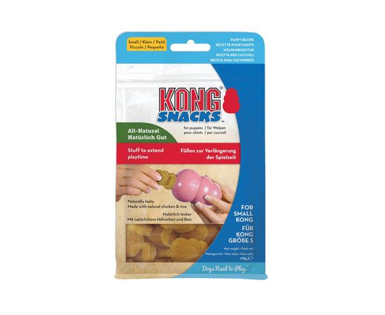 Los KONG Snacks Puppy son snacks sabrosos ideados para las necesidades y el gusto de los cachorros. Estos bocados son completamente naturales y tienen una perfecta calidad. No contienen maiz, soja ni trigo. Su tamaño tiene una forma y una medida especial que permiten insertarlo con facilidad en el juguete de caucho KONG pequeño.