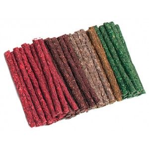 Bolsita de 100 palitos de colores hechos con piel prensada, ideal para todas las razas y edades, se pueden romper fácilmente lo que hacen que sea una recompensa ideal para la educación de tu mascota.