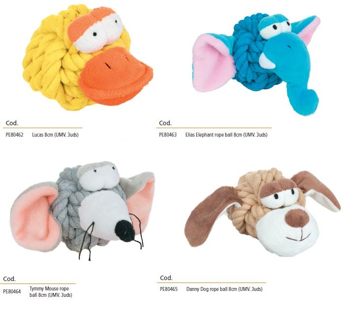 PE80465 Danny Dog rope ball 8cm (UMV. 3uds)